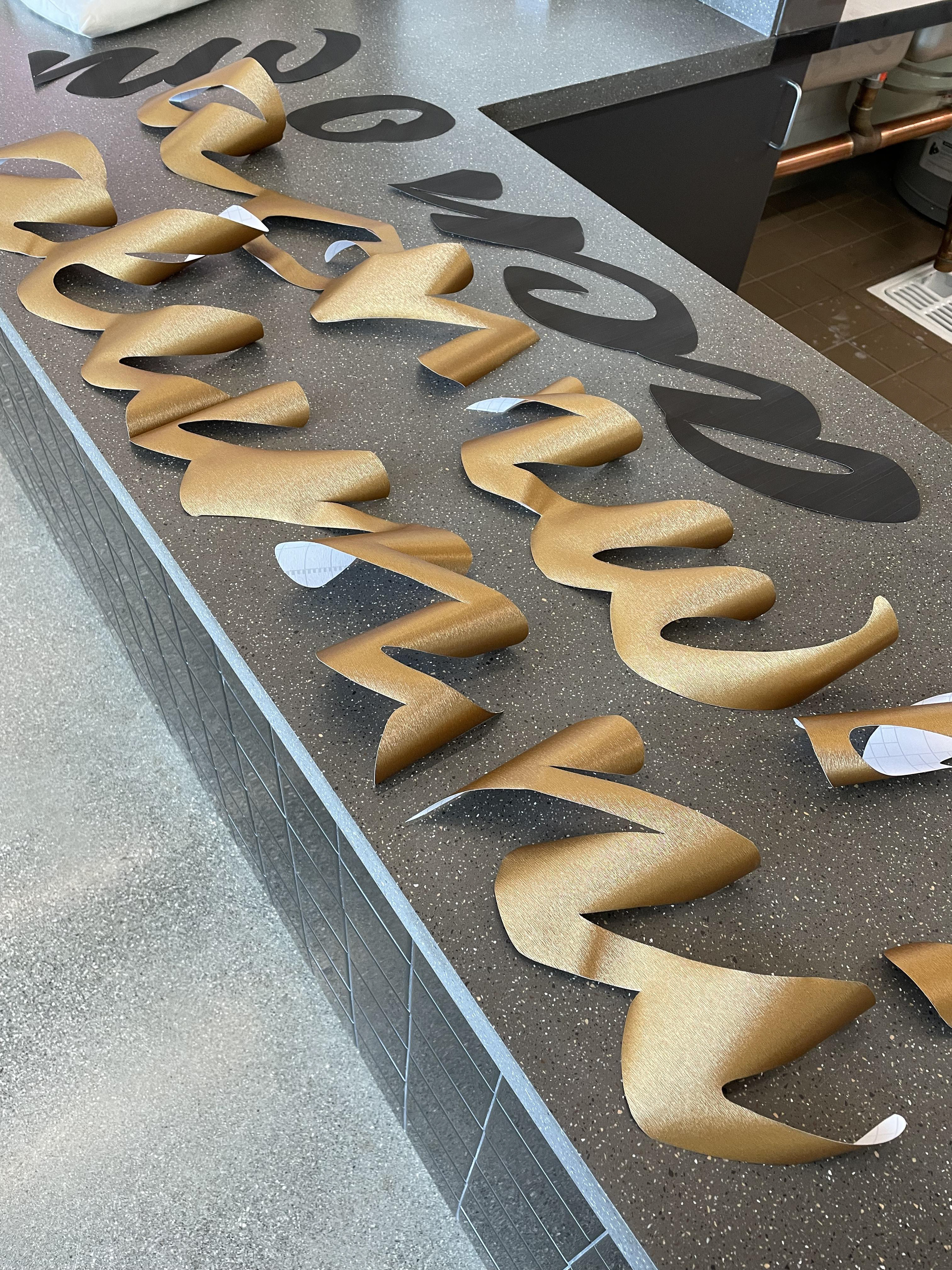 Designed and cut vinyl letters for Alumni photo wall art in Academy for Creative Media building.